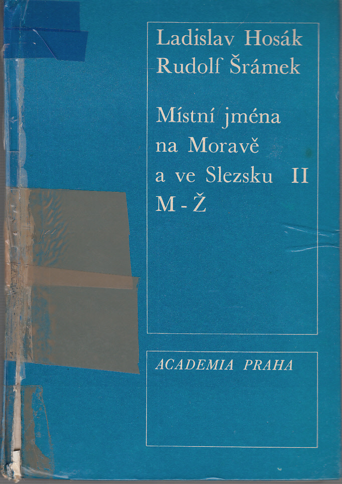 Ladislav Hosák, Rudolf ŠrámekMístní jména na Moravě a ve Slezsku I.+II.Rok vydání: 1970 - 1980 Číslo vydání: 1. Nakladatelství:Academia Počet stran: 576+964 Vazba: vázaná Rozměry: 24,5 x 17 cm Stav: U druhého dílu poškozená vazba - vyspraveno neodborně lep. páskou, na předsádce poznámky tužkou